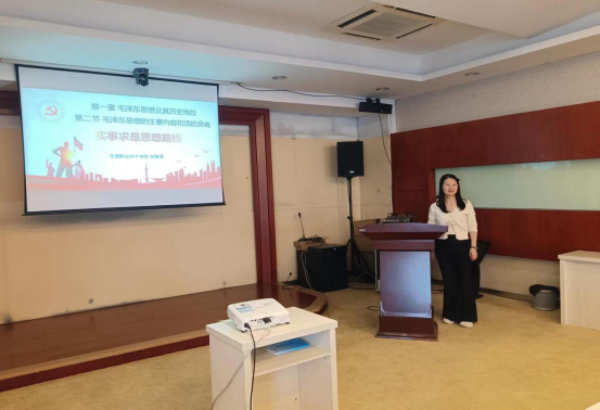 紧接着,教研室邹斐漾老师主讲《实事求是思想路线》,邹老师同样紧扣《毛泽东思想和中国特色社会主义理论体系概论》课程2023年版国家统编教材的新变化和新要求,从实事求是思想路线的哲学基础、文化渊源、形成过程、理论内涵、重大意义、实践路径等多重维度内容作了精彩的现场教学展示,其他教研室老师就邹老师的教学展示内容依次进行了点评,重点对该知识点的教学设计理念优化、教学内容优化整合、教学组织创新、教学技巧和手段选用等诸多方面发表了建设性意见和建议,并经过交流和讨论形成了共识性的解决方案。