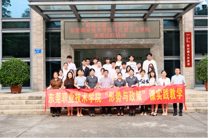 为讲好用好新时代“大思政课”,激活社会大课堂,切实加强大学生法治教育,更好地推动习近平法治思想和党的二十大精神进教材、进课堂、进头脑,2023年4月18日上午,“形势与政策”课教研室在马克思主义学院院长石文斌教授的带领下,组织了20余名学生代表深入东莞市第一人民法院松山湖人民法庭开展实践教学活动。