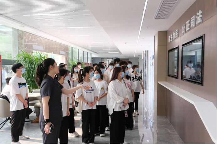 活动中,师生参观了松山湖人民法庭,包括信访接待中心、立案大厅、一站式诉讼服务中心等场所。讲解员向同学们介绍了信访接待中心的设置及接待工作的具体流程。在此过程中同学们切实感受到了司法机关“对党忠诚、为民服务”的理念。此外,师生还“零距离”旁听了一场关于“房屋买卖合同纠纷”的民事案件庭审,观摩了开庭、法庭调查、法庭举证质证、法庭辩论、被告人最后陈述等环节,身临其境地感受庭审现场的庄严与法律的威严神圣。