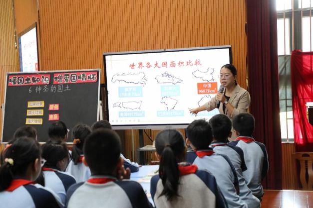 10月12日上午,老师们走进小学课堂,切身感受不同学段的思政课教学特色。前进小学陈艳静老师主讲五年级《道德与法治》上册第6课《我们神圣的国土》,生动精彩、思政味十足。她通过创设情境、小组展示、合作探究、阅读角等方式,引导学生自主学习了解关于中国国土,行政区划等知识,知道我国幅员辽阔,激发学生强烈的自豪感和政治认同感,启发学生明确维护祖国统一、人人有责。