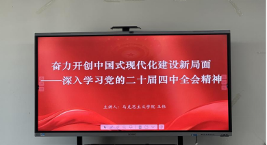 王伟副教授以“奋力开创中国式现代化建设新局面——深入学习党的二十届四中全会精神”为题,对深入领会全会精神进行了系统阐释和深入解读。他指出,党的二十届四中全会是在即将进入基本实现社会主义现代化夯实基础、全面发力的关键时期召开的一次十分重要的会议。王伟副教授从中美政党决策的制定和执行对比中,深入理解《中共中央关于制定国民经济和社会发展第十五个五年规划的建议》的科学性,分析了“十五五”时期经济社会发展的历史方位和总体要求、战略任务和重大举措、根本保证和创造活力等。最后,王伟副教授强调要积极响应党的号召,要更加紧密地团结在以习近平同志为核心的党中央周围,为基本实现社会主义现代化而共同奋斗,不断开创以中国式现代化全面推进强国建设、民族复兴伟业新局面。