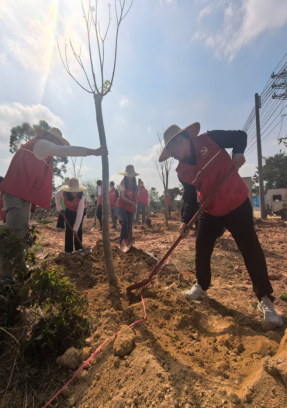 为深入贯彻落实习近平生态文明思想,积极响应广东省“百县千镇万村高质量发展工程”号召,推动党建引领乡村振兴,3月17日,东莞职业技术学院马克思主义学院(以下简称“马院”)党总支书记石文斌、副书记张楠、副院长罗美琪及教师代表一行前往党建共建单位——东莞市石排镇赤坎村,开展“植新绿 开新局 谱新篇”主题义务植树活动。